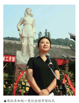 陈红的这份倔强还体现在不遗余力地宣传赵一曼精神上。赵一曼是在东北参加抗日战争而牺牲,东北人民对赵一曼格外敬重,经常有东北的单位请陈红去讲讲奶奶的故事和精神,每接到这样的邀请,陈红不计任何成本也要去。她经常在宣讲的现场被层层的人群围住,人们希望听到更多关于赵一曼的细节。每到这时,陈红内心就会充满力量——“奶奶是一个弱女子,甚至给自己取的字都为‘淑宁’,希望安宁平静地生活,但时代没有给她一个安宁的立锥之地。她没有屈服,而是选择了反抗,选择了一种为更多人的安宁而不惜牺牲的信念,成就了一项伟大的事业。”在一次次与奶奶的灵魂“对话”之后,陈红感到,任何时代都需要赵一曼这种敢于担当的信念,有了这份信念,一个人方能成为优秀的人,一个民族方能成为伟大的民族。