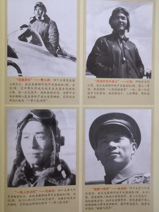 ▲空15师部分抗美援朝英雄事迹。江震后来从空15师调出,到新组建的空21师担任副师长、师长等职务,离休时任沈阳军区空军副司令员,空军中将军衔,2019年9月逝世
