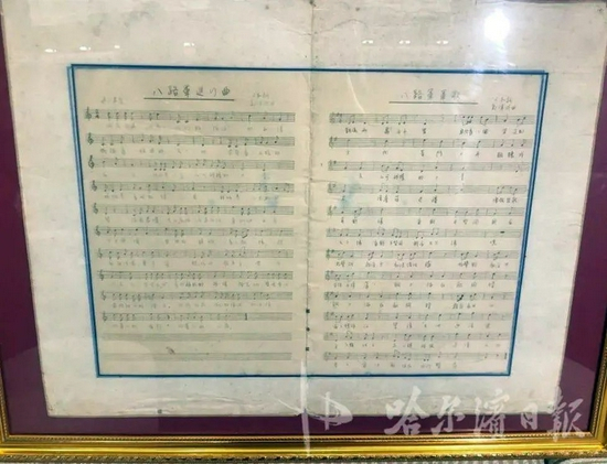 音乐家郑律成之女捐赠的《八路军进行曲》《八路军军歌》手稿。
