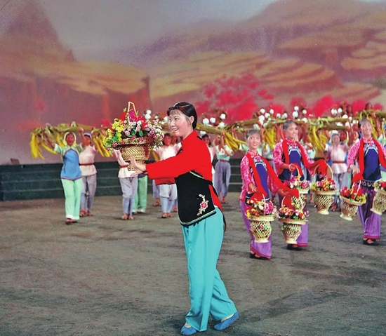 歌唱家郭兰英在音乐舞蹈史诗《东方红》中演唱《南泥湾》。