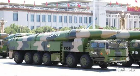 这款导弹也是反舰弹道导弹,和DF-21D一同在2015年9月3日的大阅兵上亮相,它就是DF-26。