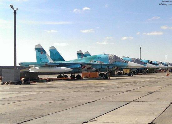 由于并列双座布局增加的阻力和大幅增加的重量,苏-34在内油增加到12.1吨后才达到了1100公里的作战半径,为了满足俄罗斯空军转场航程4000公里的要求,该机不得不挂上了副油箱。在转场飞行中苏-34可挂3个PTB-3000副油箱(机翼下两个机身下一个),共增加载油9000升。(作者署名:空军之翼)