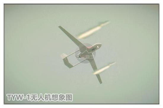 高空长航时+察打一体 卖点非常突出(合成图)根据英国《简氏防务周刊》引述中国北方一无人机系统的总设计师在4月5日对《中国日报》采访是的报道透露的消息称,中国一款全新的无人机将会在今年9月首飞,最早2018年投放市场。而这款无人机将会有别与“翼龙”和“彩虹”,将会主打高度自动化和中高空远程两大特点。根据总师的介绍称”TYW-1“无人机是基于中国自用的“BZK-005”型无人机改进来。BZK-005型无人机是中国在2006年时研发的一种高空长航时远距离侦查用无人机,采用了大升阻比设计,翼展可达20米。而且整机采用了碳纤维和玻璃纤维复合材料热模压成型,使得机体重量进一步降低。该机采用了推进式螺旋桨布局,更有利于在高空飞行,并且方便与部署载荷和卫星通讯天线。如果能够换装涡扇发动机,则可以跟美军的RQ-4“全球鹰”无人侦察机等同效果使用。而这次对外推出的TYW-1无人机应该继承了BZK-005型无人机的有点,理论巡航超过40小时,最大起飞重量1.5吨,可以携带300公斤的导弹或者炸弹。更主要的是,该型无人机采用了完全自主开放的模块化平台,可以在完全无人工干预的情况下完成自主起降,并可自动跟踪和攻击目标。甚至培训一名操作员只需要1个月时间,其实刨除1-2个星期的理论学习以外,飞行实践时间最多也就是3周,只能说明该型机的自动化程度相当的高。