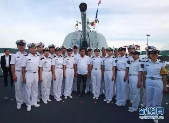 菲律宾总统杜特尔特5月1日登上正在菲南部城市达沃进行友好访问的中国海军远航访问编队长春舰参观。