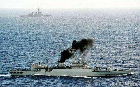 中国053H2护卫舰采用柴油机动力,也会冒出黑烟。