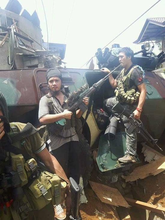 这种装甲车是美国打完越南战争后留给菲军的,如今竟被一小股恐怖武装没收了,不知美国人看到恐怖分子站在美制LAV-150上耀武扬威会作何感想。