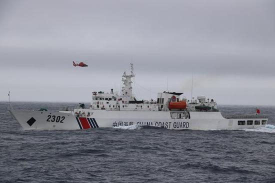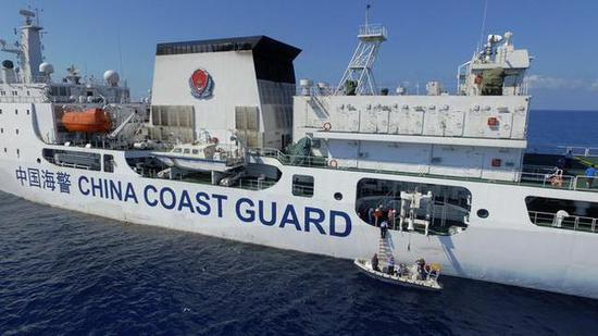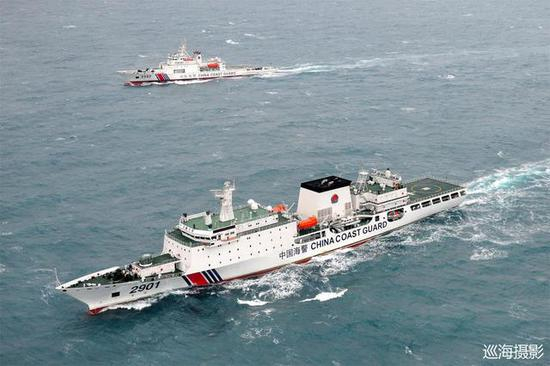 中国海警“3901”号舰携带有2架无人机,用了19天时间海上观察和航空巡视了12个岛礁,并登上15个岛礁进行检查。