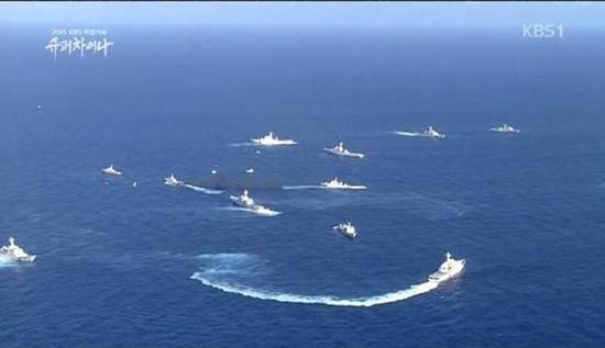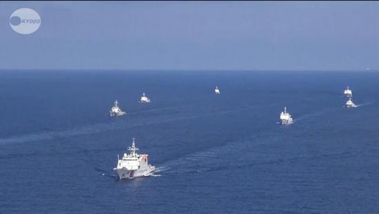 图片:日本电视台播放的中国海警船编队怼日本海上保安厅公务船的画面。