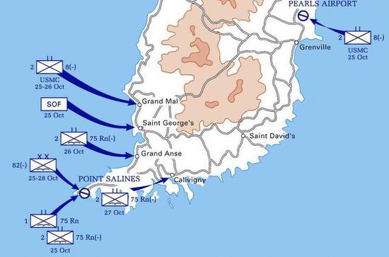格林纳达方面,也不是完全没有准备,古巴也派了雇佣兵(由托尔托洛上校带领)协助防守,面积本来就不大的格林纳达海岸线,全部都派驻了兵力守卫。