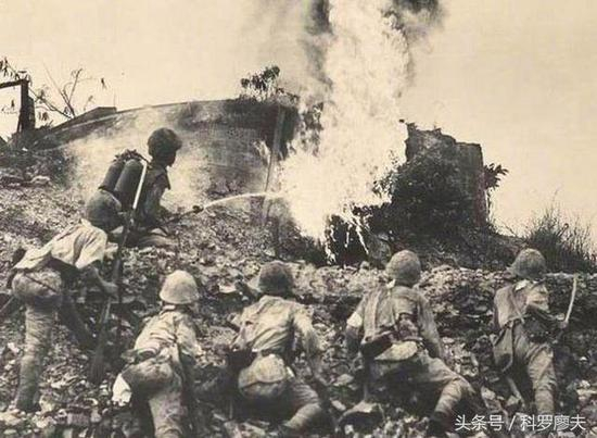 美国战争电影《猪排山》里就有这样的镜头:中国人民志愿军使用了火焰喷射器,使得美军成了猪排山上的烤猪!