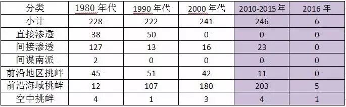 2009年,金正恩继承权力的格局基本形成,2010年之后,朝鲜的挑衅活动次数明显增加。可以说,金正恩掌握权力后,朝鲜表现得更为激进好斗(参考表1)。需要特别注意的是,金正恩政权将核、导弹威胁提升为实际的挑衅活动。自金正恩执政后,朝鲜共进行了3次核试验,弹道导弹发射次数共计28次(48枚),是金正日执政18年间发射数量(16枚)的2.9倍。最近,朝鲜又在进行潜射导弹(SLBM)试射、固体燃料弹道导弹发射,其核导能力又有了质的提高。在“关键决心·鹞鹰”演习期间,朝鲜同样采取符合其一贯立场的挑衅姿态。