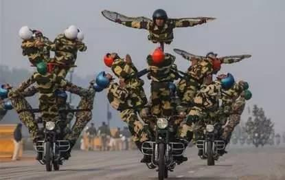 这是一张在互联网上流传颇广的印军图片。阅兵式上夸张的表现,虽然在某种程度上是印度民族传统和民族文化的一种体现,但也同时说明印度人不懂现代军事,不知道通过阅兵向世界展示什么、证实什么。看看印度所谓“尚武民族”的锡克族官兵那长达20米的包头布,就知道他们的观念和体制都僵化到何等程度。