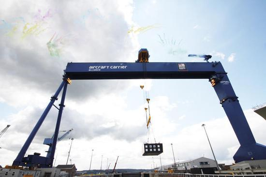 除了造航母外,其他的配套工程中国也吃透了,比如上海振华重工生产的1000吨级龙门吊已经垄断了国际市场,英国建造航母时就向中国进口了振华重工的龙门吊。门式起重机是桥式起重机的一种变形,又叫龙门吊。主要用于室外的货场、料场货、散货的装卸作业。门式起重机具有场地利用率高、作业范围大、适应面广、通用性强等特点,在港口货场得到广泛使用。它的金属结构像门形框架,承载主梁下安装两条支脚,可以直接在地面的轨道上行走,主梁两端可以具有外伸悬臂梁。龙门吊也就是门式起重机工作级别A:它反映了起重机在载荷状态和利用繁忙程度两个方面的工作特性。工作级别的划分是由起重机的利用等级U和载荷状态Q决定的。