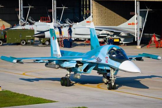 △在中国参加比赛的俄军苏-34,背后是战胜它的歼轰-7A“飞豹”