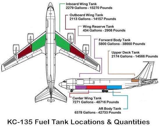 伊尔78这种设计自然最省事——随着燃油大量消耗(自用、外输),重心的变化幅度特别小,全机的重量配载管理工作特别简单;而且实际上对于全机的结构几乎没有任何明显的修改,真是多快好省建设社会主义的典范。