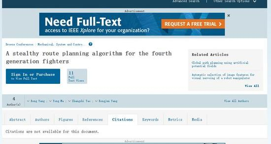 笔者在查阅全球权威学术期刊电气和电子工程师协会数字图书馆论文时,不经意间看到今年我国科学家发表的一篇重要论文,即《第四代战机隐身作战路线规划算法》。这篇论文署名为中国电科南京第28所杨荣、马勇和陶长志三位科学家,而文中三位科学家提出的技术一旦运用到歼-20之上,将能够使其作战能力提高四倍以上,属世界首创。