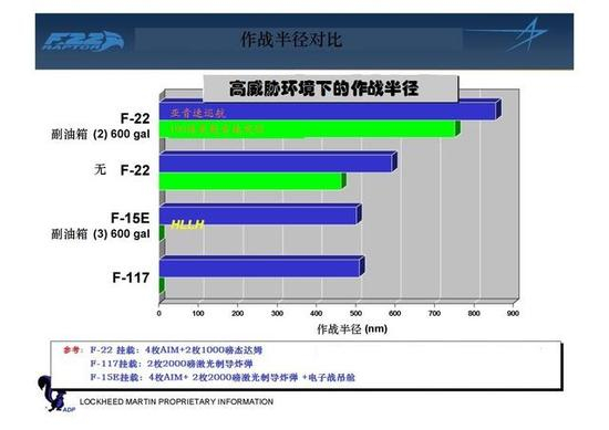 以F-22为例,其作战半径为850海里,但这只是亚音速巡航状态,若要设置100海里的低空突防剖面,就必须减少100海里的作战半径,损失和收益基本在1:1的比例左右。而面对S-400这种怪物,一架飞机突防时,假设携带了射程100km的防区外打击武器攻击目标,在距S-400还有400km时就要进入突防航线,那么飞机的全部作战半径也会缩短300km,而目前大多数飞机对地攻击满挂载时作战半径仅有600千米上下,这样的缩减比例,就让其变成了机场保卫者。