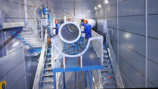 中国工人在组装发动机试车台