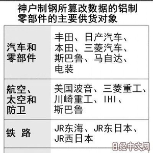 200家企业涉及汽车、新干线、飞机、防卫产业等广泛范围。铁粉和用于液晶屏幕的金属材料也发现存在篡改。在汽车行业,美国巨头通用汽车(GM)、福特汽车也开始调查,不排除实施召回(免费回收及修理)的可能性。