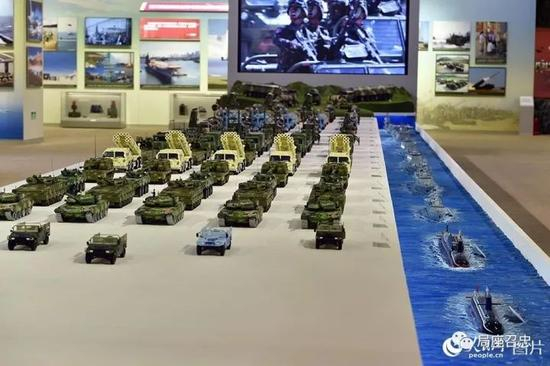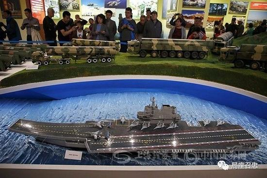 在名为“实现强军目标,建设世界一流军队”的第七展区,还以实物和展板的形式,展示了一批国产最新武器装备。其中,首艘国产航空母舰的大比例模型更是吸引了很多观众的驻足。