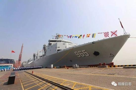 我国新型综合补给舰首舰呼伦湖舰入列仪式