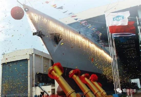 我国第一艘万吨驱逐舰055型驱逐舰下水仪式