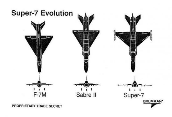 图片:美国格鲁门公司当年的材料,注意观察歼-7M、佩刀II和超-7三个方案的差别。