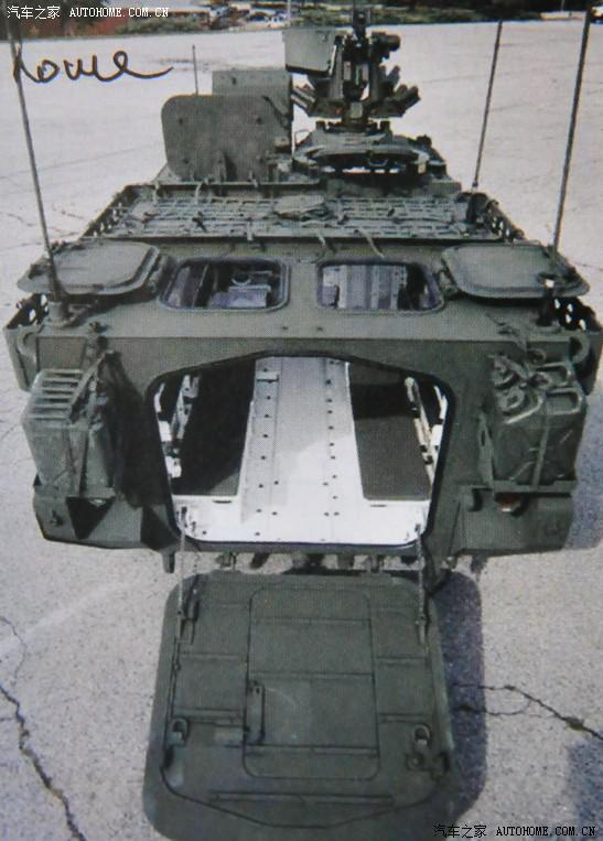 美国斯特瑞克装甲车的液压跳板门,这样门开的大,方便物资和人员上下车,注意踏板上也有备用侧开门