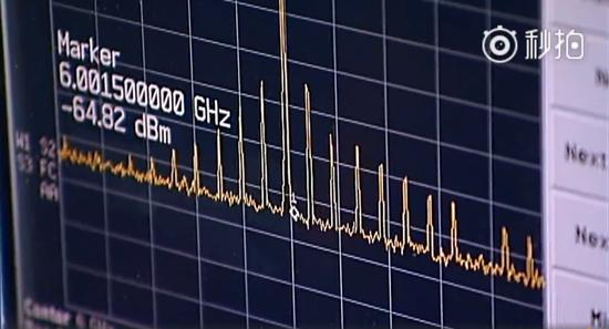 在题为《中国空军奋飞新时代》的宣传片的第1分04秒,出现了一个短暂的画面,看上去很是稀松平常——只是一部显示器显示了几个数据。以往,中国空军官方公布显示设备通常都会打码,而这次却很清晰地呈现:显示屏上显示的是一个并不复杂的波形,波形左上角有英文单词Marker(特征),在Marker下面,出现了6.00。。。。。GHz的字样,这很显然表示的是一种频率。下面还有一个不断变化的数字,范围从-63dBm到-65dBm之间变化。伴随着该画面,是“实施干扰”的口令,和“信息对抗”的字样。