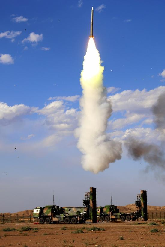 红旗-9导弹发射。其雷达是展示敌方重点监控对象。