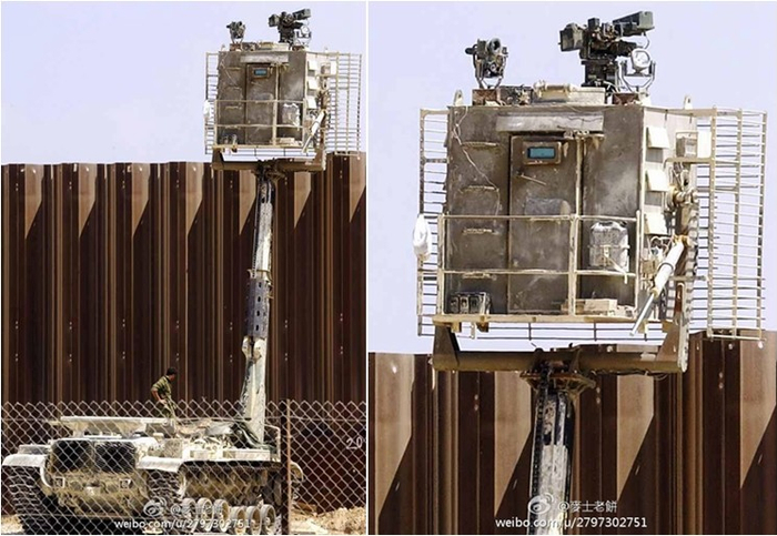 其实思路前卫的以色列人早就在移动岗哨方面做过文章。拿老式的美制M60主战坦克去掉炮塔安装伸缩岗哨,制成了装甲移动哨所,部署在以黎边境上。
