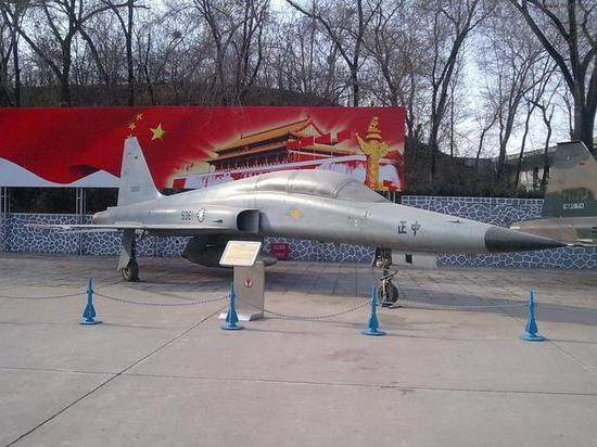 图片:北京航空航天博物馆中展示的F-5F战斗机,中国通过该机获得了着陆钩技术。