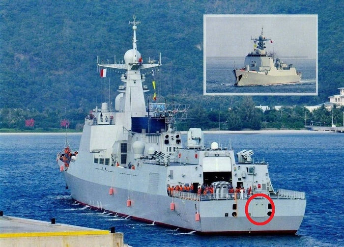 052D型驱逐舰舰艉的拖曳声呐释放口被舱门遮蔽。