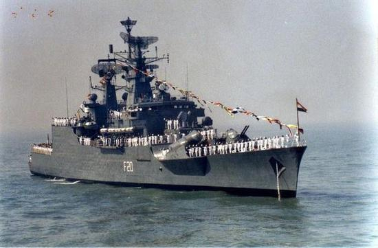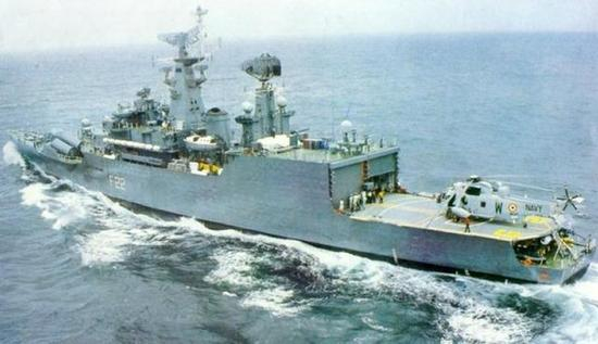 12月4日,印度派出了一艘导弹护卫舰“戈达瓦里”号追踪中国海军编队。这是戈达瓦里级护卫舰的首舰,1983年刚刚入列,是印度海军自行设计建造的一级通用型大型导弹护卫舰。
