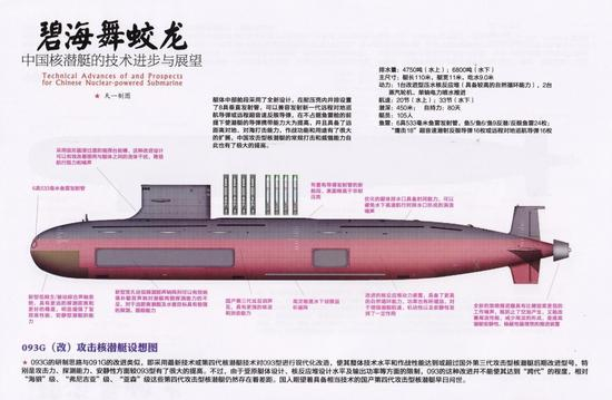 09III型攻击核潜艇作为中国自主研制的第二代攻击核潜艇,早在2006年首艇就已经服役,至今已经服役了5艘。09III型艇在服役后,经过多次升级,目前建造的09IIIB型相比最早的09III型,在降低噪音方面有了重大的进步,换装了H/SQG-207多线列式舷侧阵声呐,并在指挥台围壳后面加装了垂直发射装置,可以发射包括“鹰击-18”在内的多种导弹。