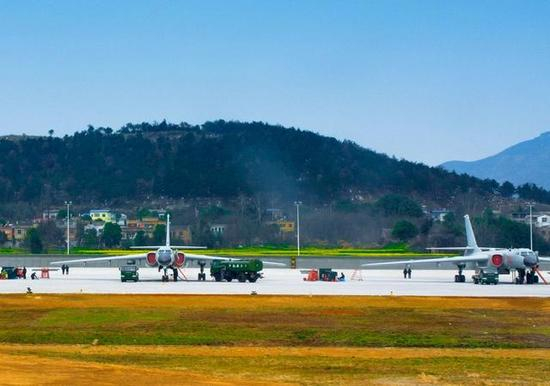 这支多型多架战编队的重要机型是有着“战神”之称的轰-6K,其最大作战半径超过3500公里,可一次性搭载6枚射程达上千公里的长剑-10巡航导弹,成为我军空基远程打击的一大重器。