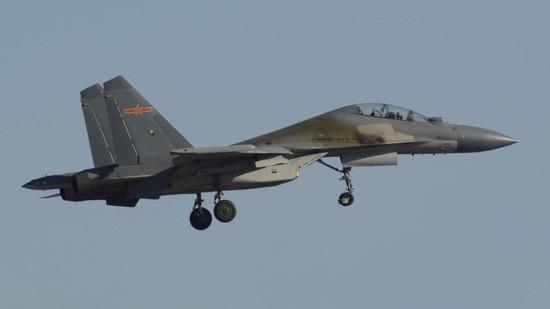 歼16战机完成航炮射击训练 机身被火药燃气熏黑