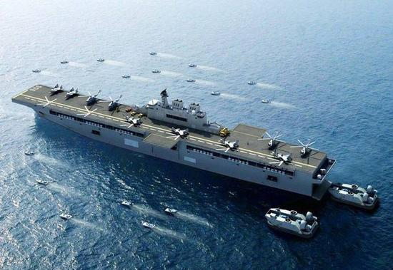 如果说中国海军舰艇还有空白的地方,那么很明显,缺少的是两栖攻击舰。作为中国海军现役吨位最大的两栖舰艇,071型船坞登陆舰虽然有巨大的停机甲板以及可容纳多艘气垫船的船坞,然而由于不是才用全通式甲板,垂直登陆能力有很大的限制。由于我国的领土争端多在海上,所以发展全通式甲板的两栖攻击舰增强两栖夺岛能力是很有必要的。在今年3月,有消息传出海军司令沈金龙视察沪东中华造船厂,有网友认为的便是我国第一代075型两栖攻击舰准备开工建造的序幕。075型两栖登陆舰预计吨位预计可达到4万多吨,采用全通式甲板设计,甲板可搭载垂直起降的固定翼战斗机、武装直升机、反潜以及运输型直升机各类舰载机20-30余架,巨大的船坞可容纳6-7艘726型气垫登陆艇,每艘726型气垫登陆艇可载1辆ZTD-05两栖突击车和2辆ZBD-05两栖步兵战车和陆战队员60-70余人。近防方面配备了2座1130型近防炮以及2座海红旗10近防导弹。 075型两栖攻击舰舰服役后不仅仅可以完善我国海军装备体系建设,而且更能大大提高夺岛能力,与海军其他水面舰艇兵力一起有效维护我国海上领土主权。