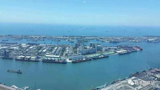 图为高雄港。台湾本岛的大中型港口并不多,除高雄之外,还有基隆、台北、台中、麦寮、左营、布袋、花莲、苏澳、安平和深澳,正好两只手数完。而且我军也会主动对个别军港予以封锁,甚至摧毁