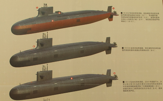 国内军事杂志刊登的093基本型、A、B型核潜艇效果图。图片来自网络,感谢扫图者。