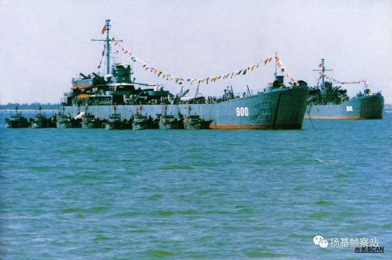 “大虎山”舰(原舷号334,后改为900)于1952年接受改装,变成为快艇部队提供基本维护补给,人员修整的海上移动平台——快艇母舰,美制登陆舰保障苏制鱼雷快艇,也是一景