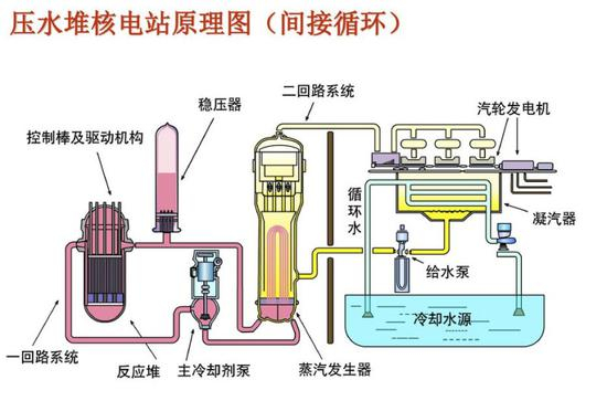 除了气冷堆中有部分类型的设计,是用核燃料加温氦气后直接推动氦气轮机旋转发电以外;现在所有的舰船动力堆和大型发电堆,都是通过各种方式烧开水,利用蒸汽去推动蒸汽轮机旋转。