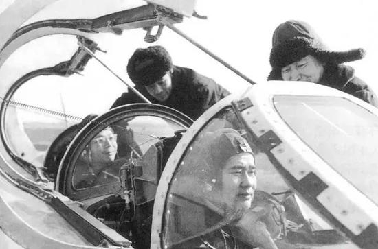 顾老(后座)为研究歼8机尾颤振,曾随前座试飞员鹿鸣东一起,乘歼教6上天考察。