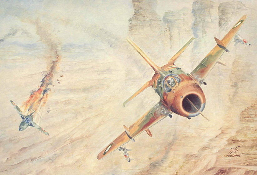 当“嘟嘟嘟”的锁定声音响起耳边,哈斯米中校迅即按下导弹发射按钮,转瞬间就将飞在后面这架苏7打的凌空爆炸。另一架苏7见势不妙,又是俯冲又是拉起,试图摆脱歼6,遗憾的是始终被哈斯米中校咬尾。就在两机相距350左右,哈斯米果断按下航炮发射按钮,将第二架印度空军苏7击落。从空中发现印度战机到双双击落,哈斯米中校用时仅45秒,成为巴空军最经典的空战之一。