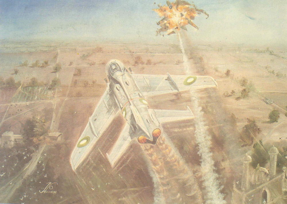就在印度空军2架打头阵的苏7距离萨勒瓦拉空军基地还有3分钟航程时,被巴基斯坦雷达兵发现。一阵急促的警报声响过,哈斯米中校拎起头盔飞奔到战机,刚驾歼6升空至2000米左右,就发现来袭的2架挂满弹药的印度苏7战机。而轻敌的印度空军飞行员还在优哉游哉,并没有发现天空中已经多了架战机。