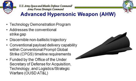 美国AHW高超音速飞行器,注意弹头上面弹翼