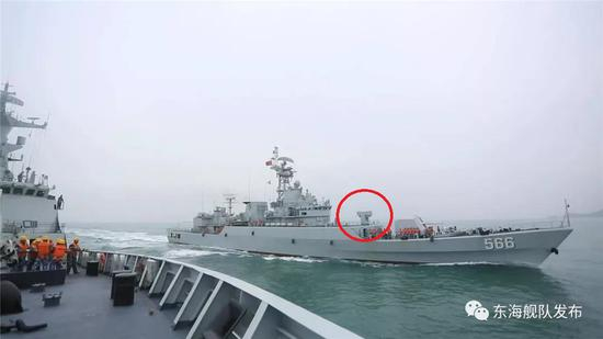 1艘053H3型导弹护卫舰完成改装后转入护卫舰支队。红圈内为红旗-10防空导弹。