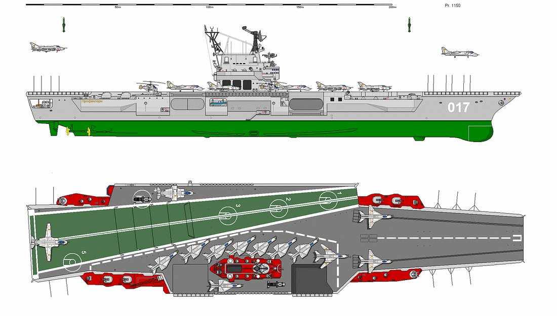 图片:受美国制海舰项目忽悠,苏联设计的1150轻型航母项目方案。