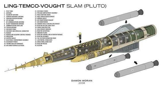 冥王星核动力巡航导弹是美国在冷战时期秘密研制一个杀手锏,该项目代号“冥王星计划”,目的就是研制一种可以在超低空飞行,并且具备无限续航力的巡航导弹,按照该计划的设想,该型核巡航导弹一旦起飞,就就可以在敌国的上空“永久”的来回飞行。