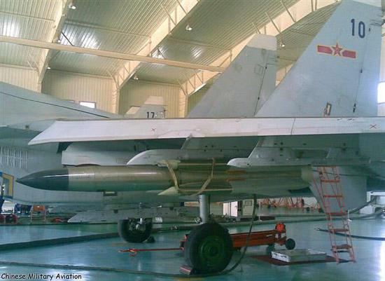 KH-31空射反舰导弹,是一种最大速度为高空3倍声速、200米低空2.5倍声速的液体燃料冲压导弹,采用组合发动机设计。固体燃料助推器的主要结构,都被安装在冲压发动机的燃烧室内。该导弹分为I、II两种型号,分别重610、700公斤;射程70公里、100公里;半穿甲战斗部分别重95、110公斤。